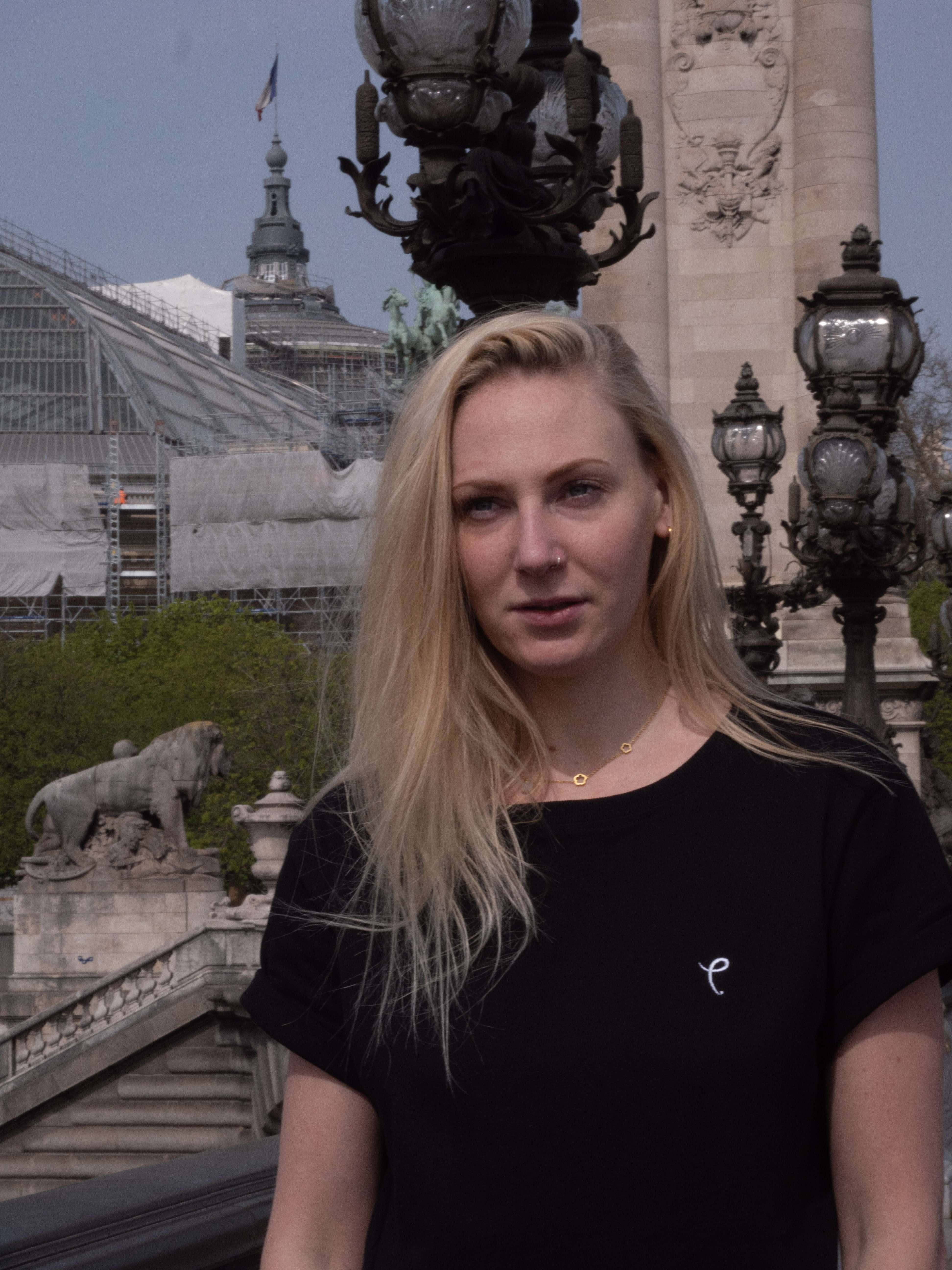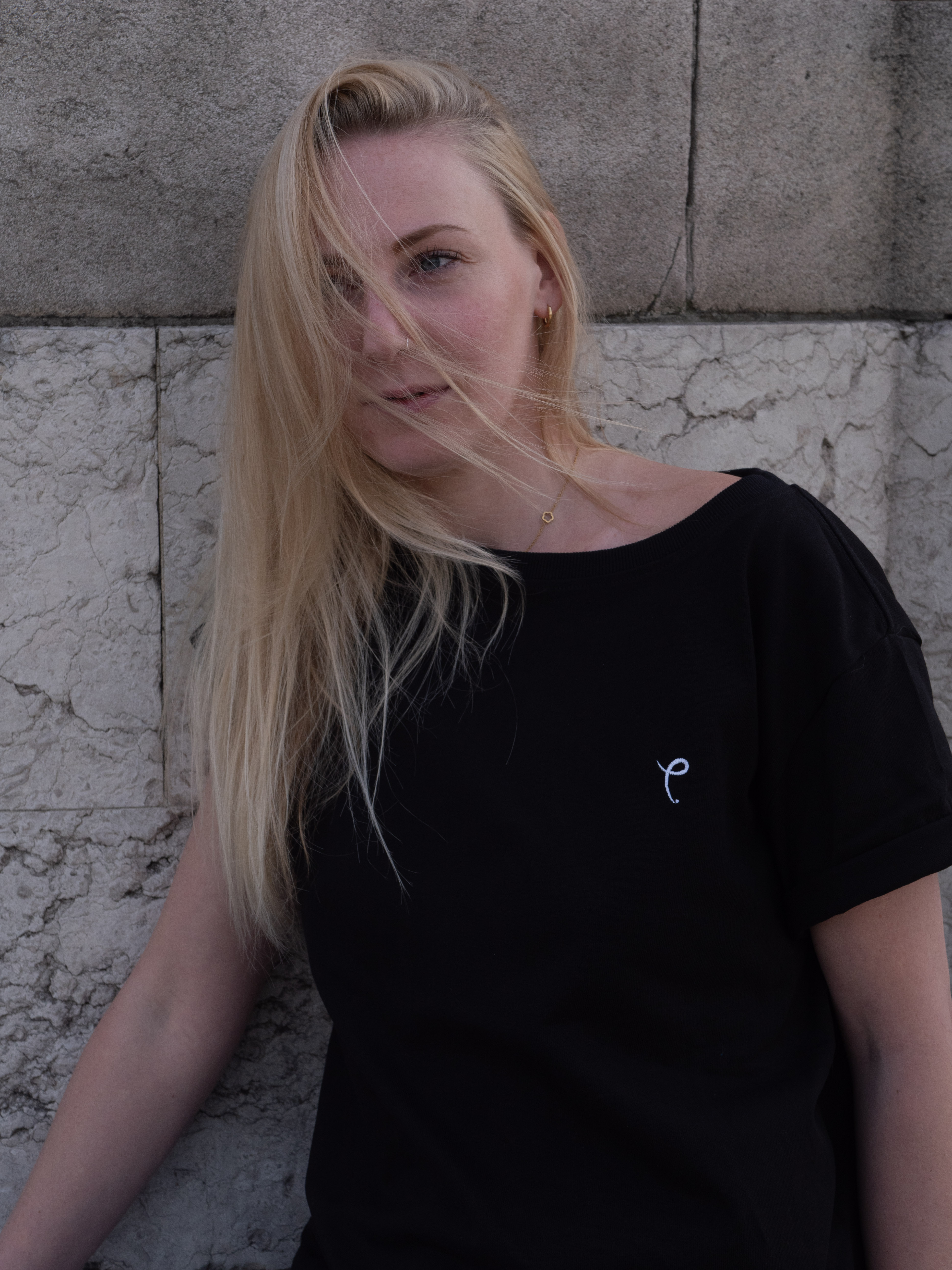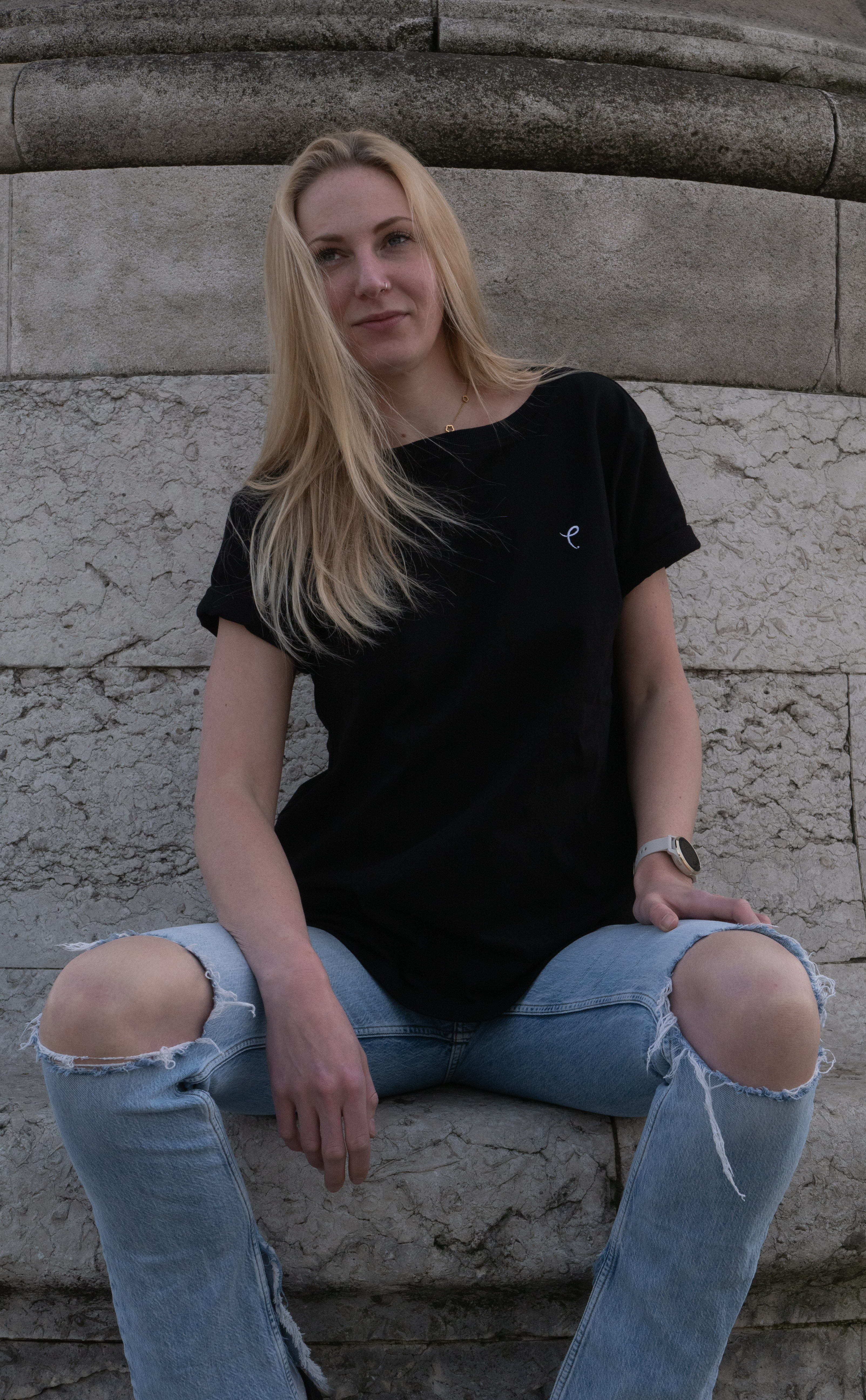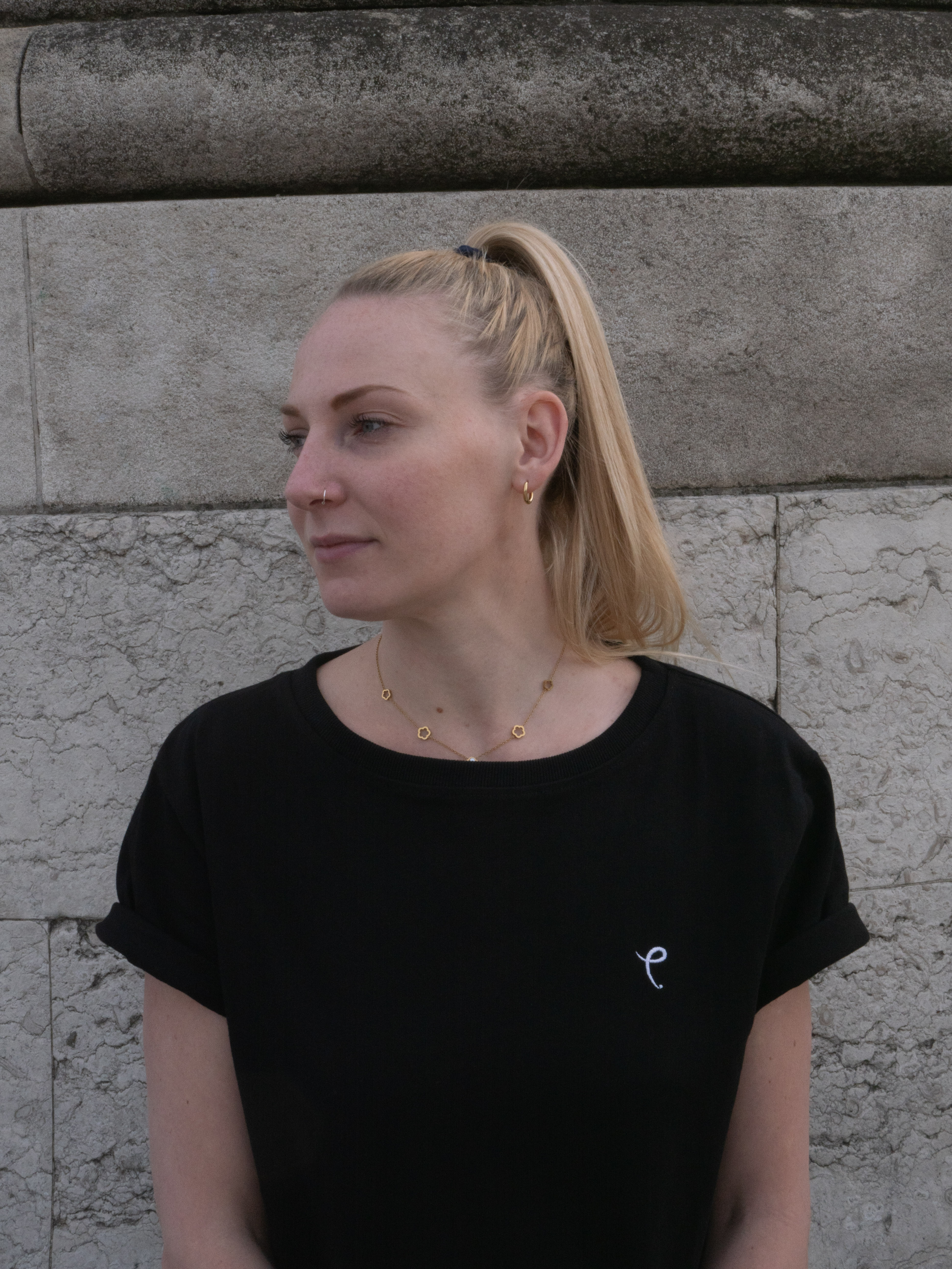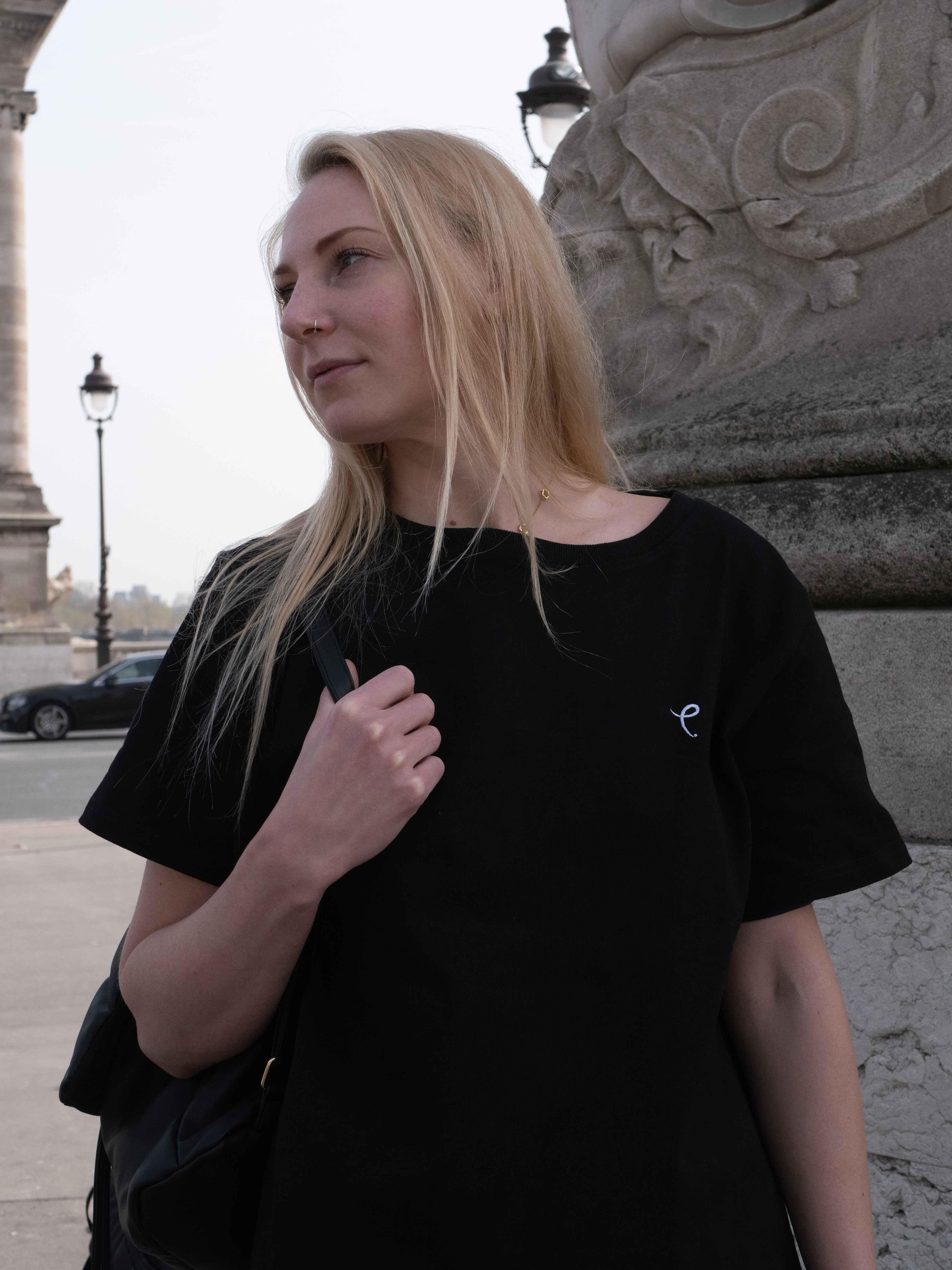 •  Nat wearing a size L and is 5’9 (Black Tee)